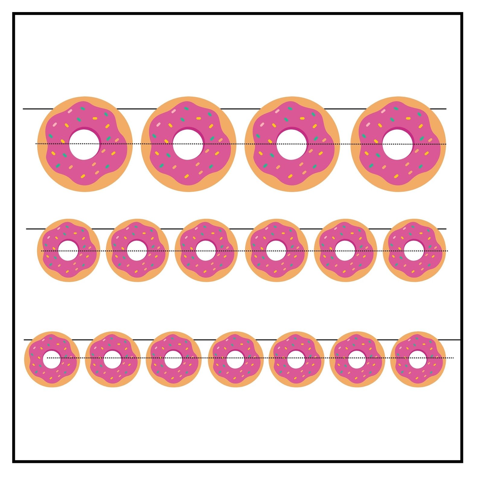 • Small & Sweet (12 per sheet): One sheet featuring 12 small donuts per A4 page. These tiny treats are fantastic for scattering on tables, attaching to party favors, or creating delicate garlands that add texture and whimsy.