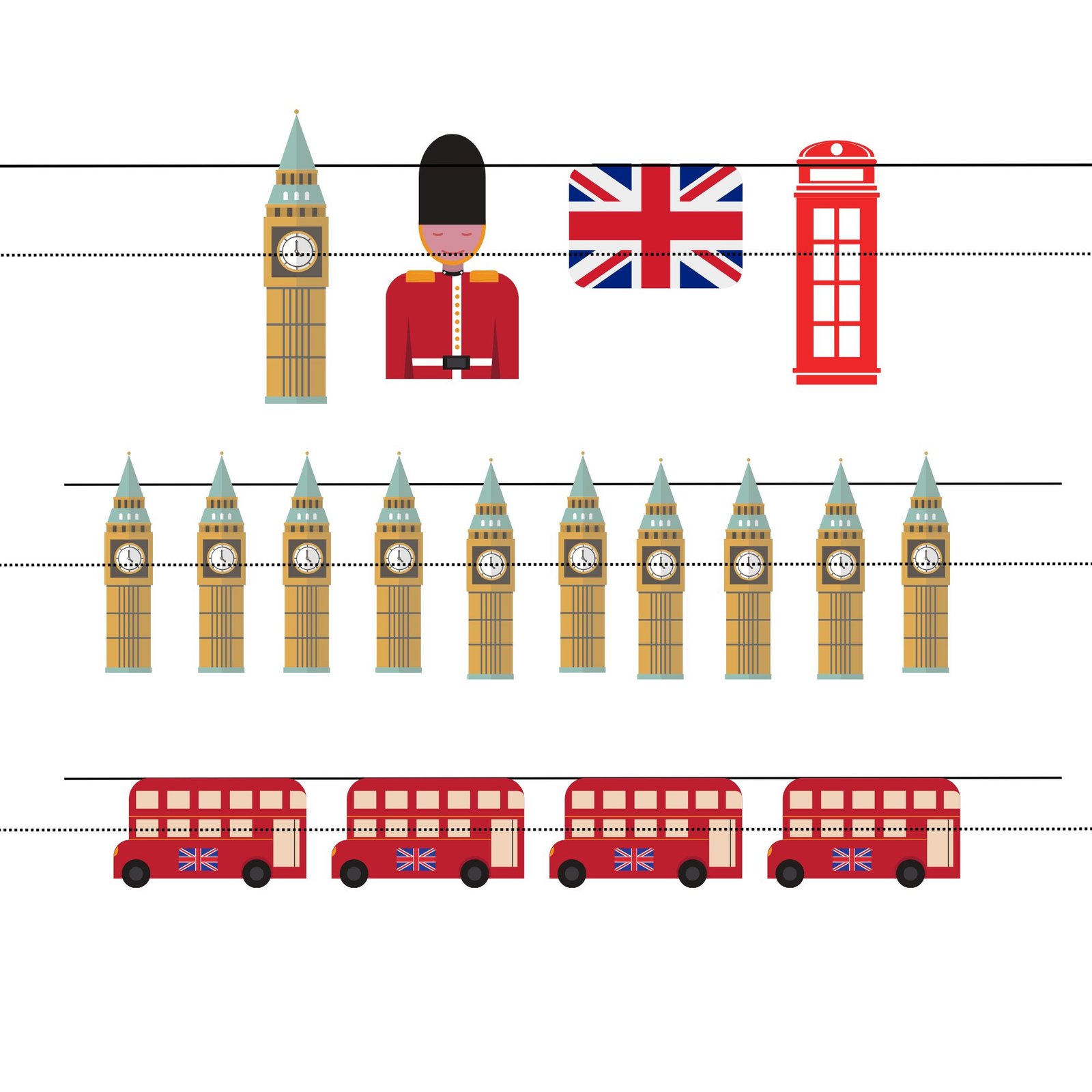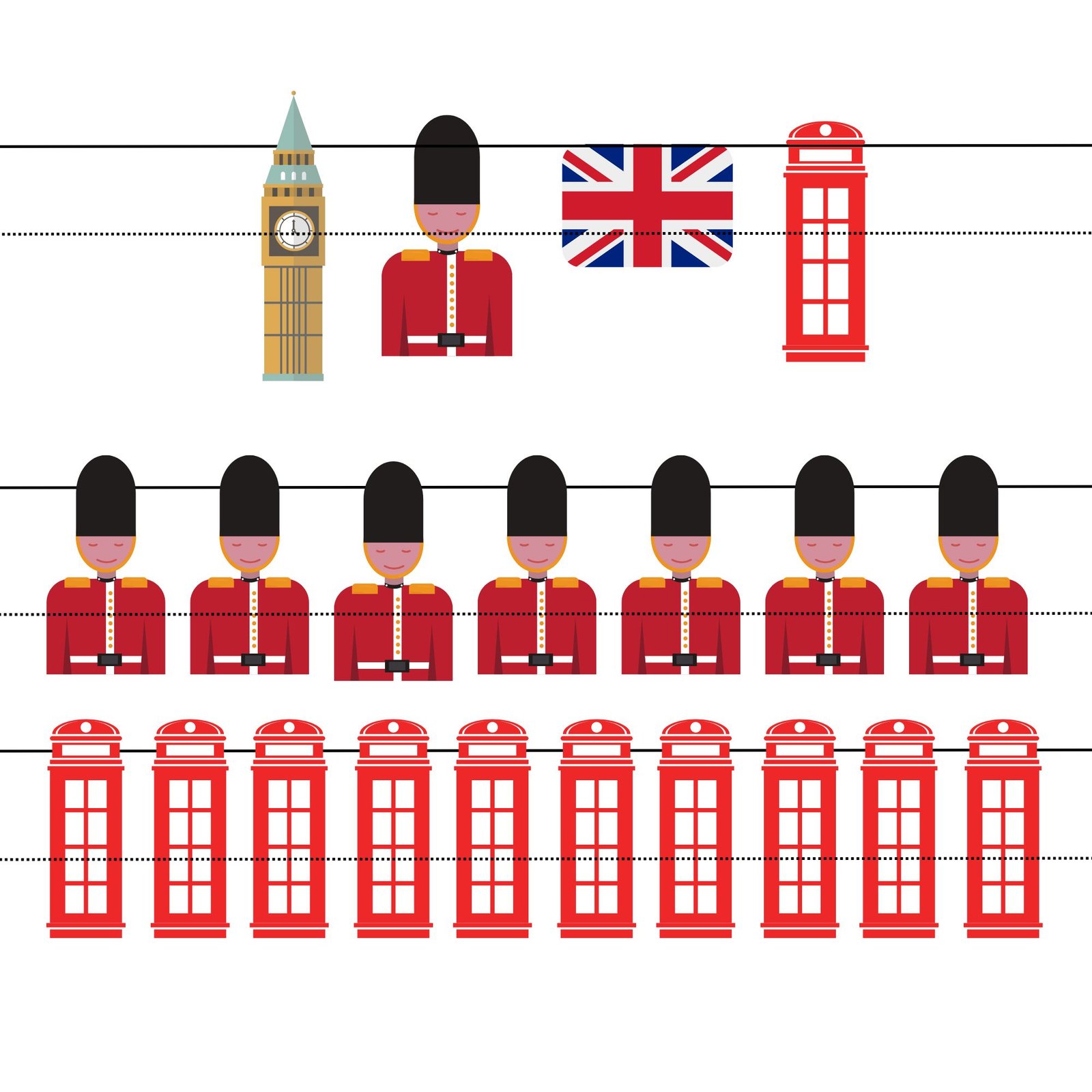 London Theme Party Garland Printable – 4 Designs, A4 Size