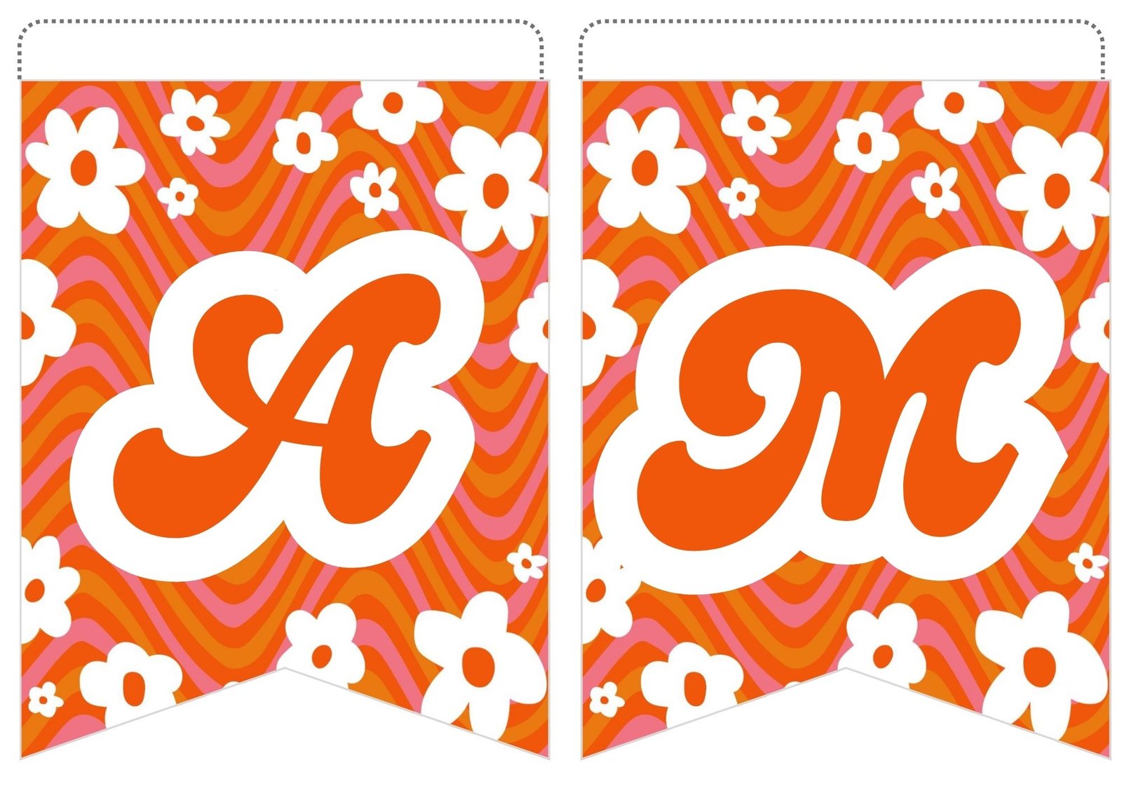 Spectacular Retro Patterns: A vibrant mix of orange waves, soft pink tones, and crisp white flowers that bring the ultimate 70s aesthetic to your modern celebration.