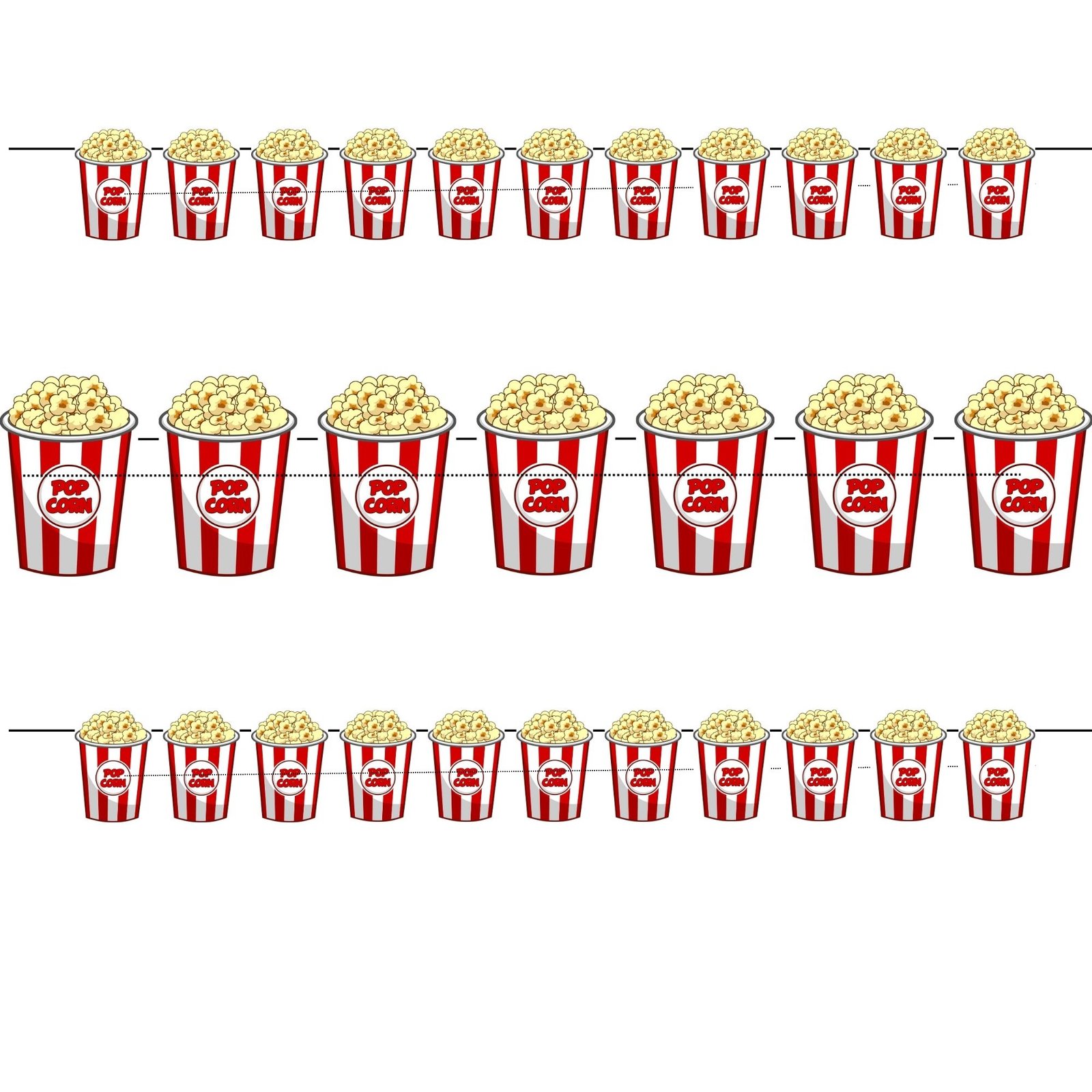 Our printable popcorn garland captures the nostalgia of the silver screen. Each illustration features a overflowing bucket of buttery, golden popcorn in the traditional theater style. The vibrant red stripes and crisp white details are designed to look sharp and professional once printed. Because this is a digital product, you have the essential freedom to print as many buckets as you need to wrap around your entire popcorn machine or concession stand.