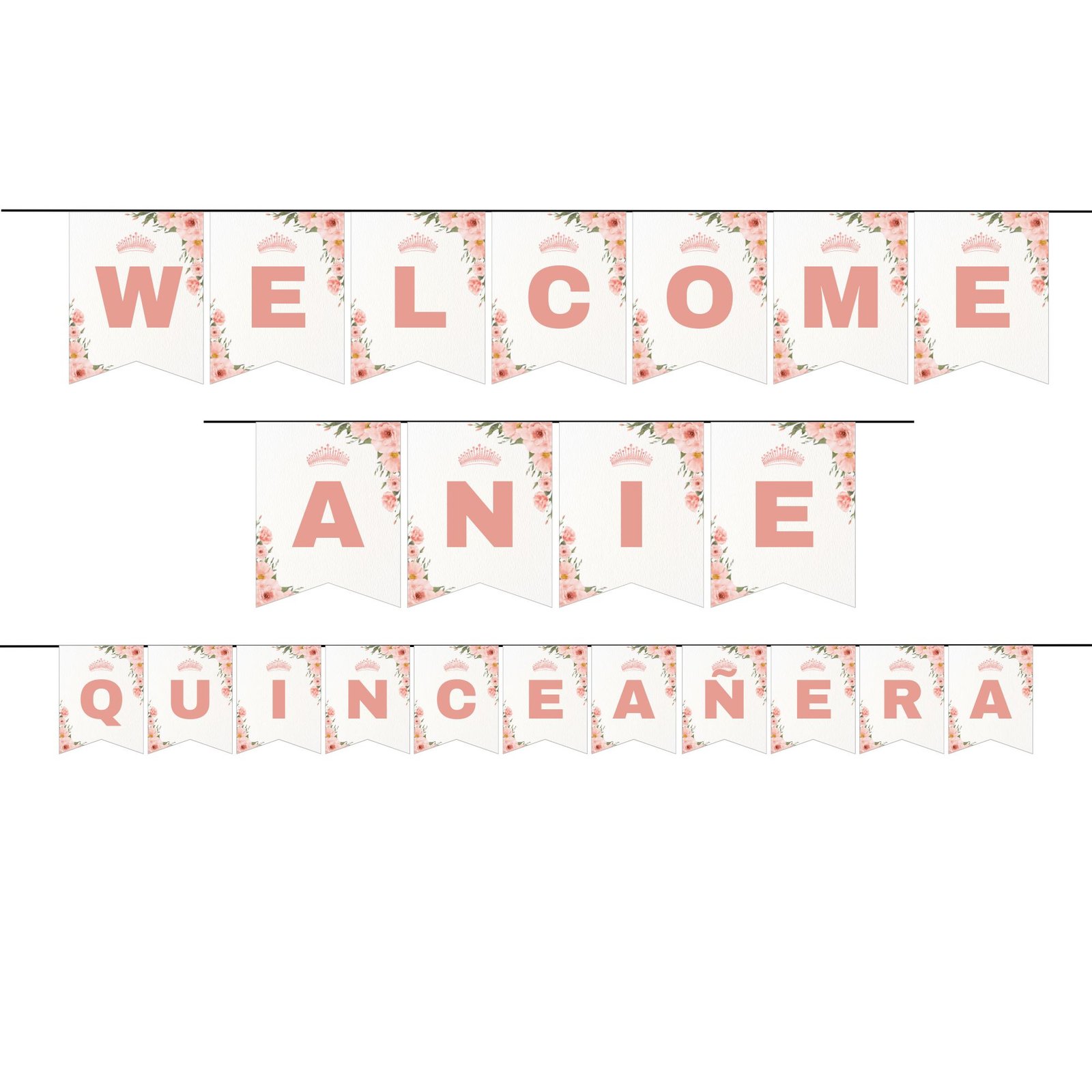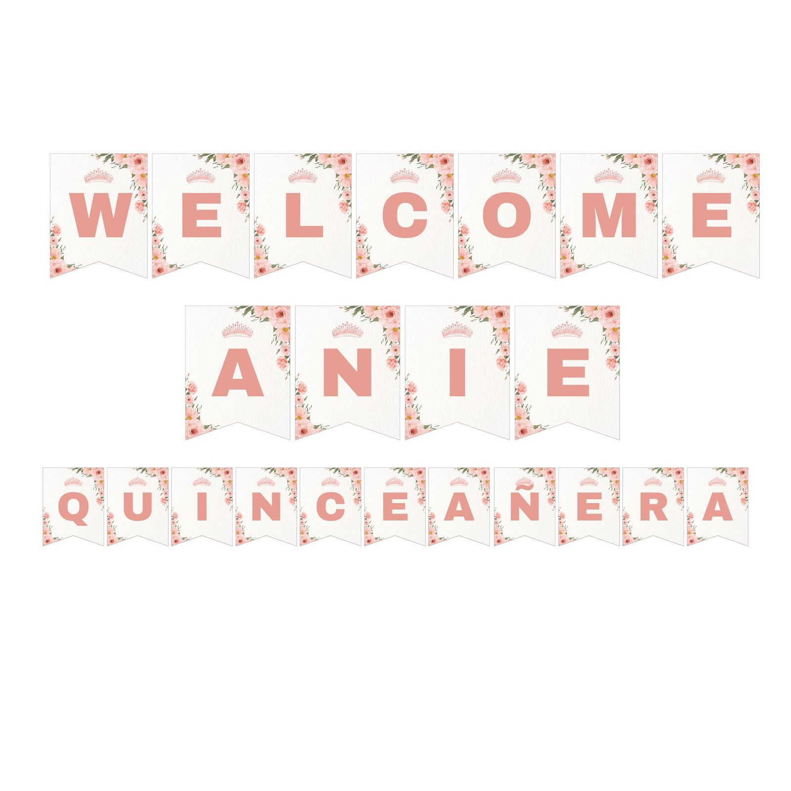 • How many letters are included? This ultimate set includes the full alphabet plus special characters, so you can create any message for the Printable Quinceañera Birthday Banner.