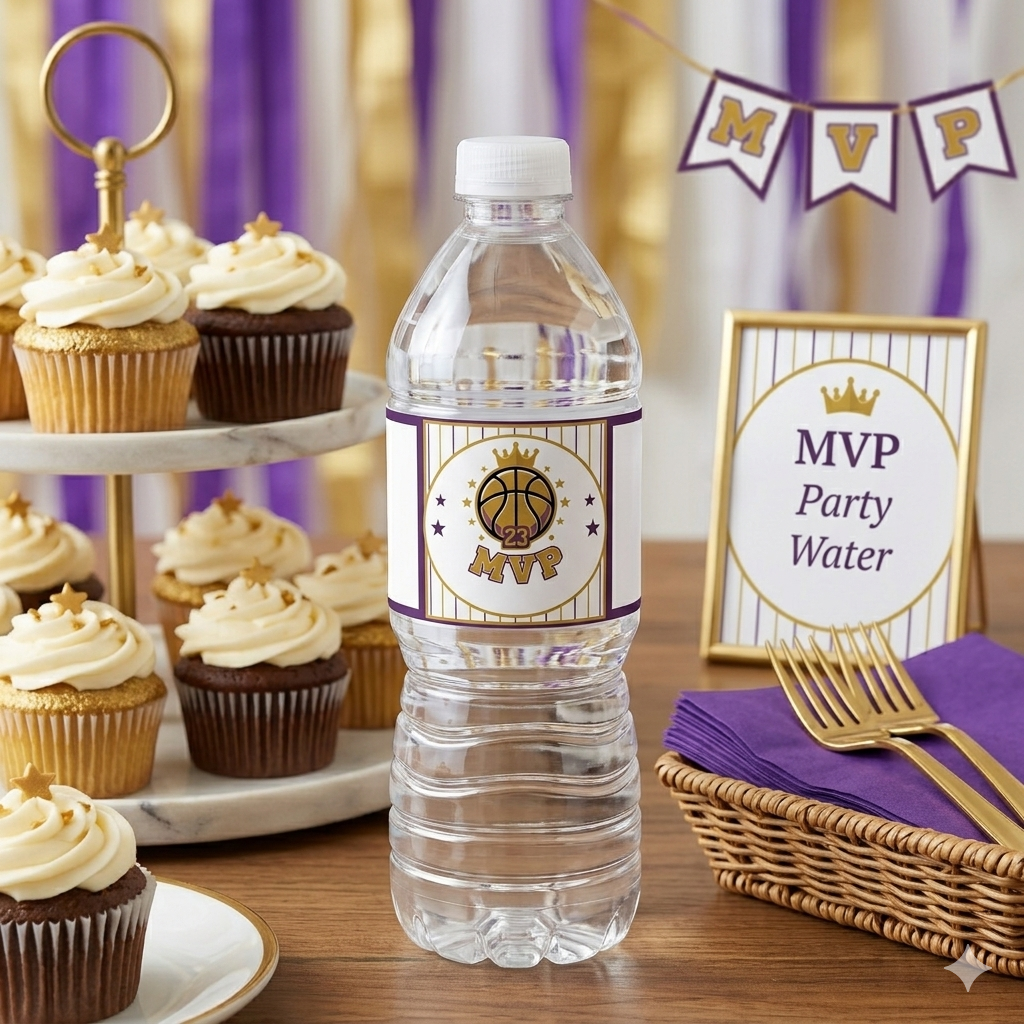Purple and Gold Basketball Water Bottle Labels are the ultimate way to bring a professional stadium feel to your next sports-themed event. If you are looking for high-quality Bottle Labels, our MVP collection is designed to turn ordinary drinks into championship-level party favors that your guests will never forget.